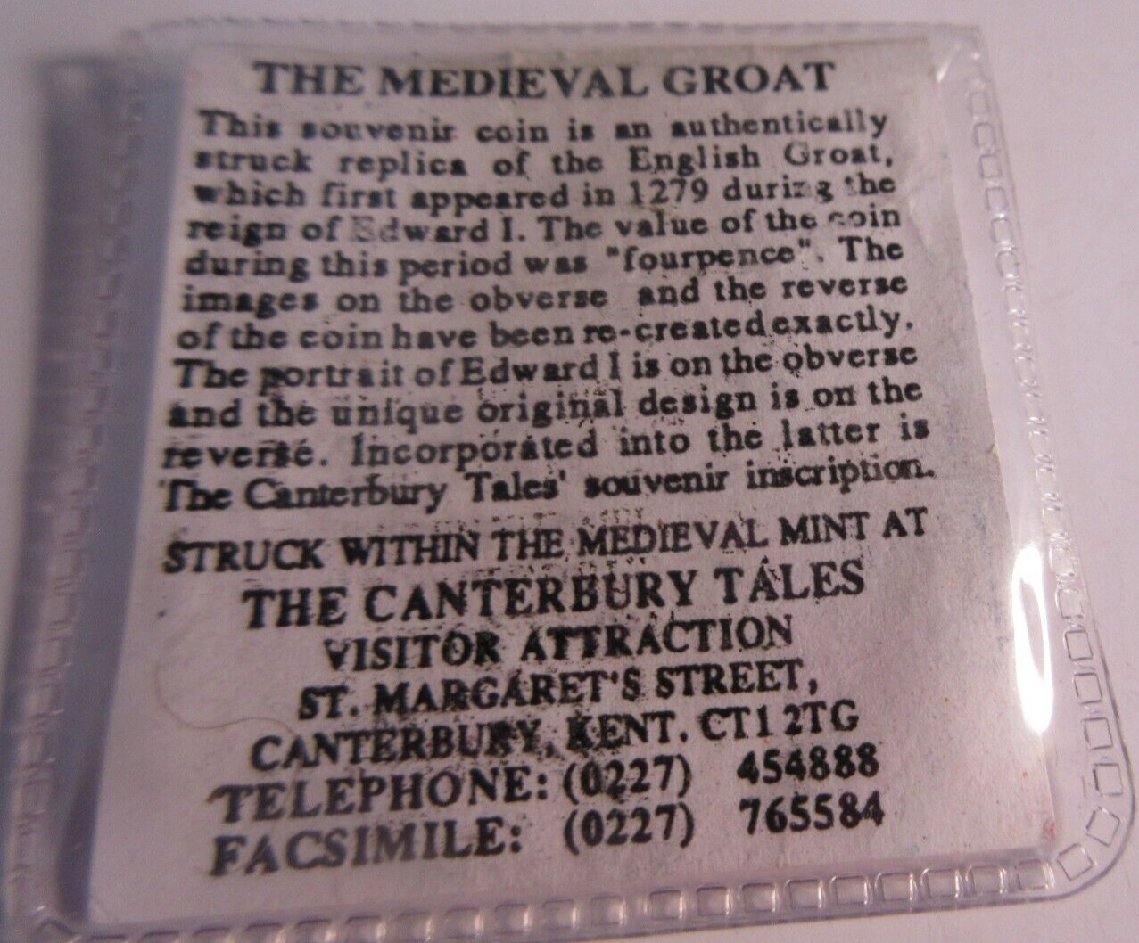 THE MEDIEVAL GROAT SOUVENIR COIN RE-STRIKE